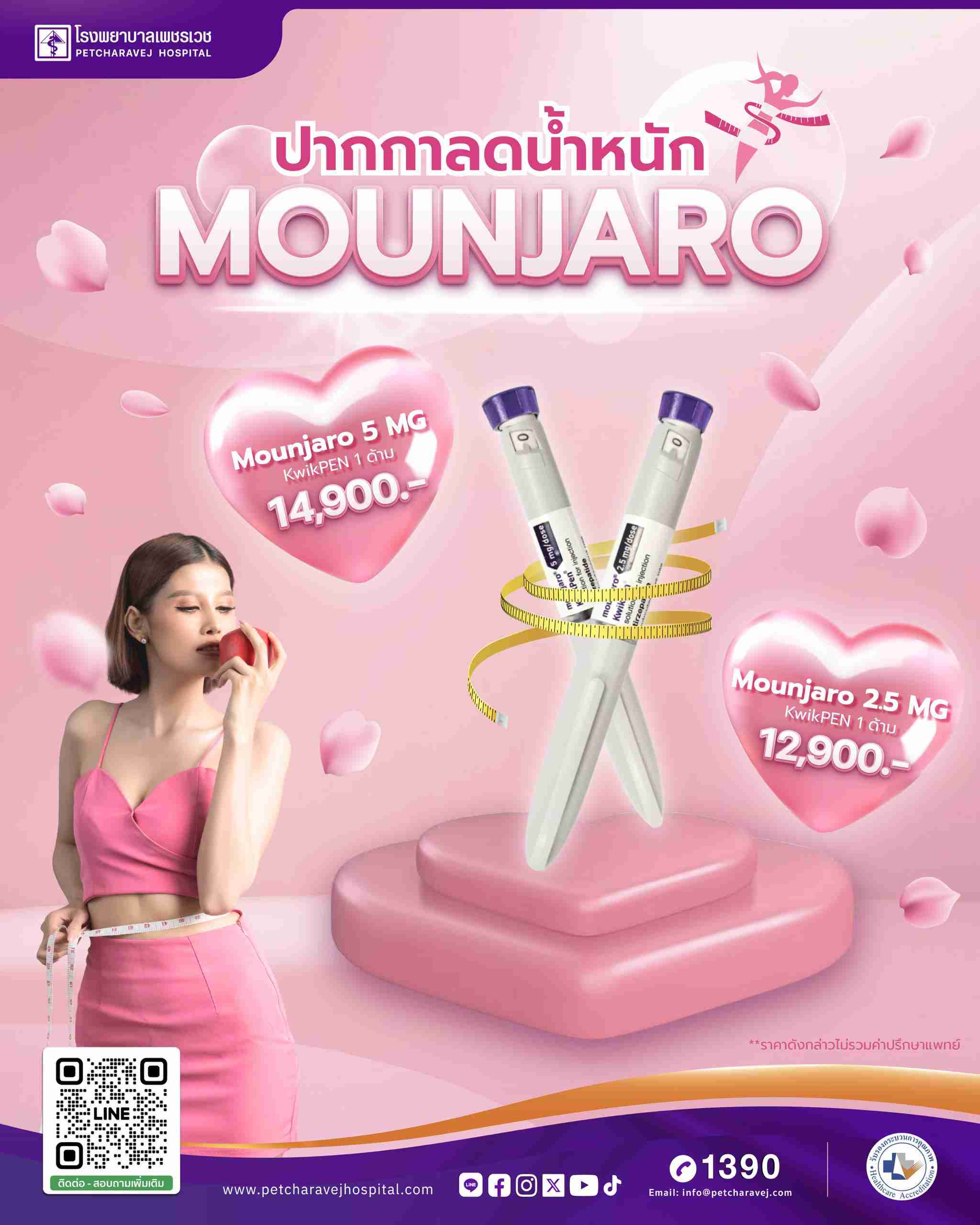 Mounjaro ปากกาลดน้ำหนักที่ช่วยดูแลเรื่องระดับน้ำตาล เหมาะสำหรับผู้ที่มีอายุ 20 ปีขึ้นไป ที่เป็นเบาหวานชนิดที่ 2 โดย 1 ด้ามสามารถใช้ได้ 4 ครั้ง ซึ่งเป็นตัวช่วยสำคัญสำหรับผู้ที่ต้องการดูแลสุขภาพ ควบคู่กับการปรับพฤติกรรม เช่น อาหารและการออกกำลังกาย ภายใต้คำแนะนำของแพทย์