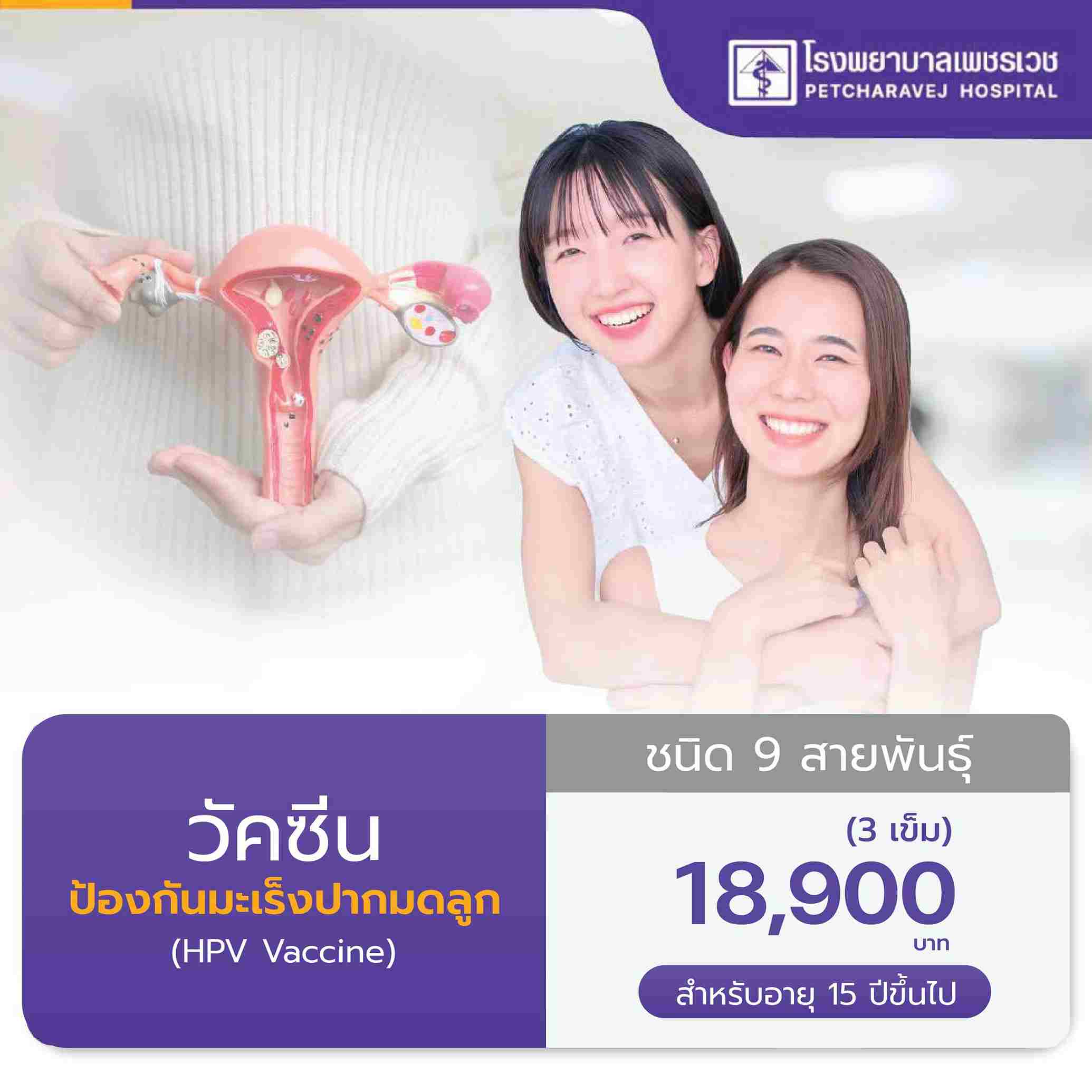 ทางเลือกสำหรับการป้องกันการติดเชื้อไวรัส HPV ที่สามารถติดต่อกันได้ทั้งผู้หญิงและผู้ชาย ครอบคลุมทั้ง 9 สายพันธุ์ (6, 11, 16, 18, 31, 33, 45, 52 และ 58) ในราคา 18,900-. ได้แก่ มะเร็งปากมดลูก หูดหงอนไก่ มะเร็งปากช่องคลอด มะเร็งช่องปากและลำคอ และมะเร็งทวารหนัก ทั้งหมด 3 เข็มในราคาเหมาๆ